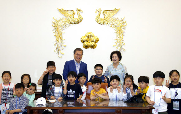 문 대통령, 대통령 집무실에서 어린이들과 - 문재인 대통령이 어린이날인 5일 오전 청와대 집무실에서 강원도 산불진화 소방관 자녀와 산불 피해 초등학교 학생들과 함께 기념촬영을 하고 있다. 이날 청와대는 강원도 산불진화 소방관, 군인, 경찰 자녀와 산불 피해 초등학교 학생 및 아동정책 수혜 아동, 독립유공자 후손 등 총 180명의 어린이를 청와대로 초청해 행사를 열었다. 2019.5.5 연합뉴스안전한 내구제 (폰테크) 를 찾으시나요 INCOME 내구제가 있습니다